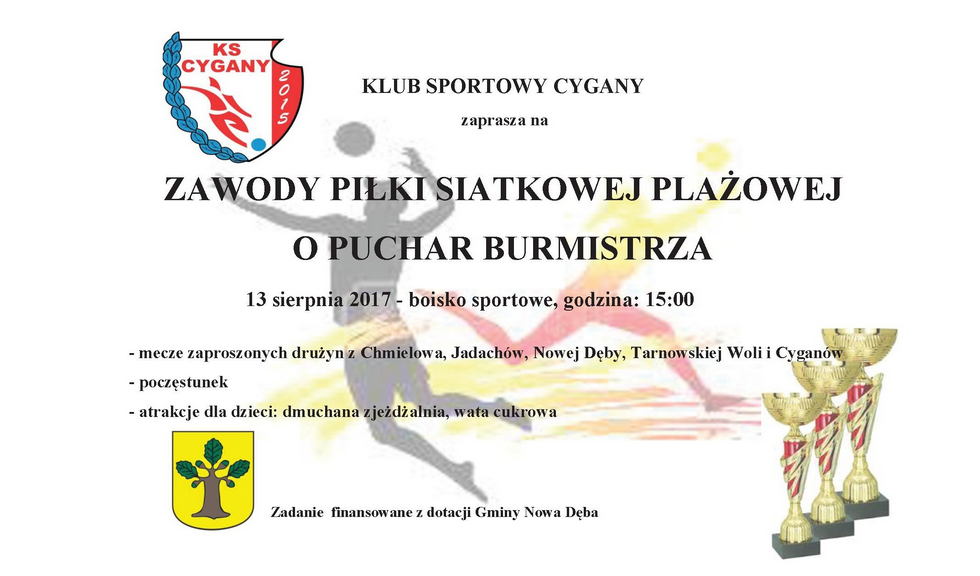 W niedzielę 13 sierpnia na boisku do siatkówki plażowej, został rozegrany turniej zorganizowany przez Stowarzyszenie Klubu Sportowego Cygany. W turnieju wzięły udział cztery drużyny w różnych kategori...