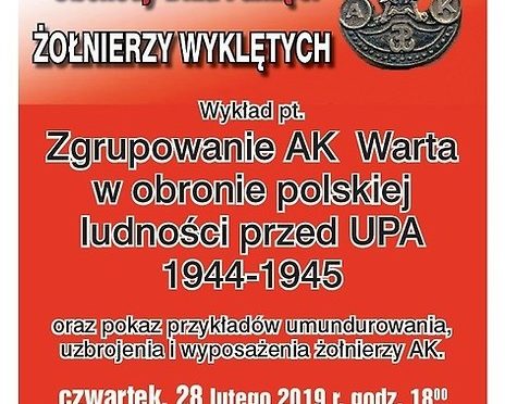 Samorządowy Ośrodek Kultury w Nowej Dębie serdecznie zaprasza na obchody Dnia Pamięci Żołnierzy Wyklętych, które odbędą się 28 lutego o godz. 18:00 w sali kameralnej SOK. Tematem spotkania będzie: „Zgrupowanie AK Warta w obronie polskiej ludności przed UPA 1944-1945”. Pokażemy przykłady umundurowania, uzbrojenia i wyposażenia żołnierzy AK.