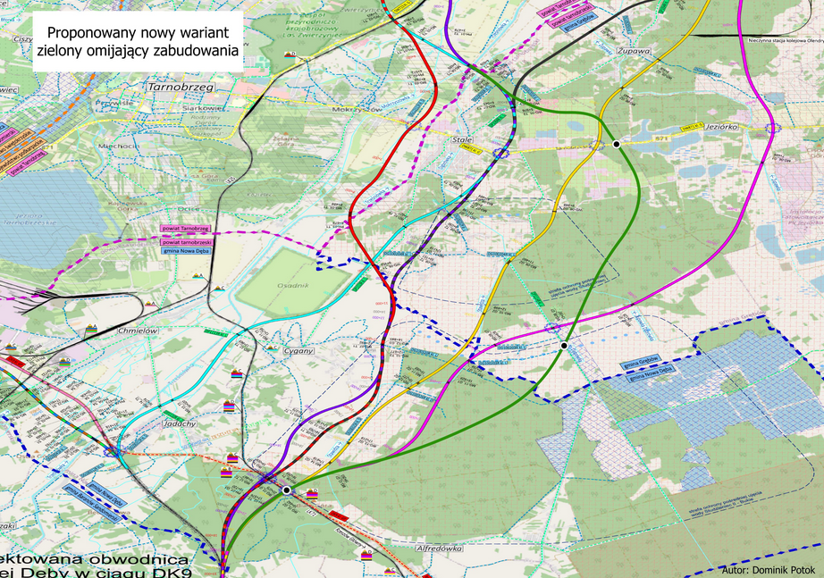 Na portalu Tarnobrzeg.info pojawił się artykuł w którym przedstawiono mapę na której została naniesiona dodatkowa koncepcja przebiegu połączenia drogi DK9 z S74 (kolor zielony). Z artykułu dowiadujmy się że jest to propozycja społeczna i była konsultowana z różnymi środowiskami. Jakiej konkretnie grupy społecznej jest to propozycja tego nie wiemy, z jakimi konkretnie środowiskami była konsultowana też nie dopisano. Przedstawiono tylko z imienia i nazwiska osobę która naniosła propozycję. Na chwilę obecną należy to traktować jako „naniesienie dodatkowej linii na mapie”. Ale udostępniamy i publikujemy, tak naniesiona propozycja odsuwa drogę od zabudowań.. Ale udostępniamy i publikujemy, tak „narysowana linia” odsuwa drogę od zabudowań.