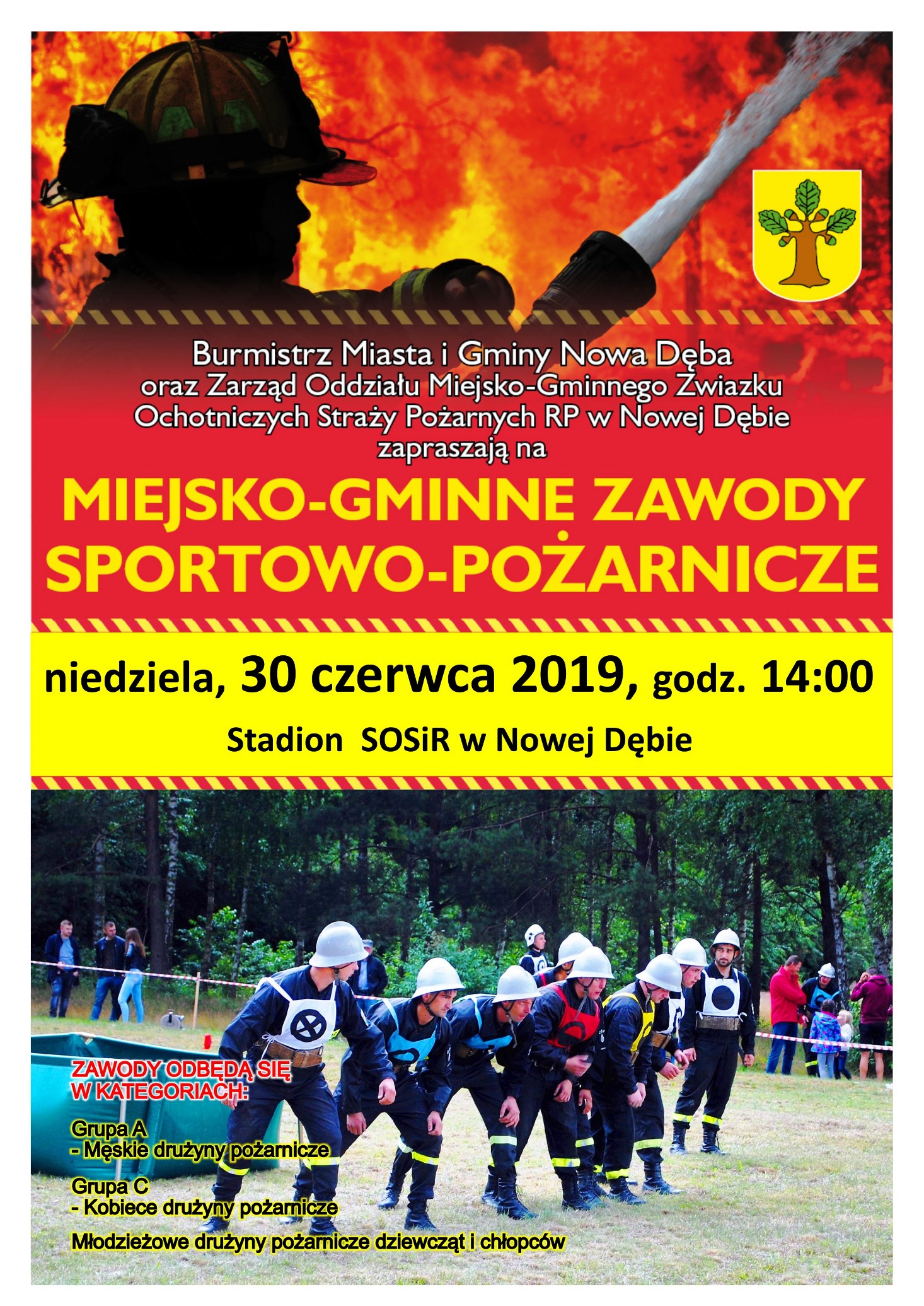 Burmistrz miasta i gminy Nowa Dęba oraz Zarząd Oddziału Miejsko-Gminnego Związku OSP RP w Nowej Dębie zapraszają mieszkańców oraz sympatyków pożarnictwa na Miejsko-Gminne Zawody Sportowo-Pożarnicze, k...