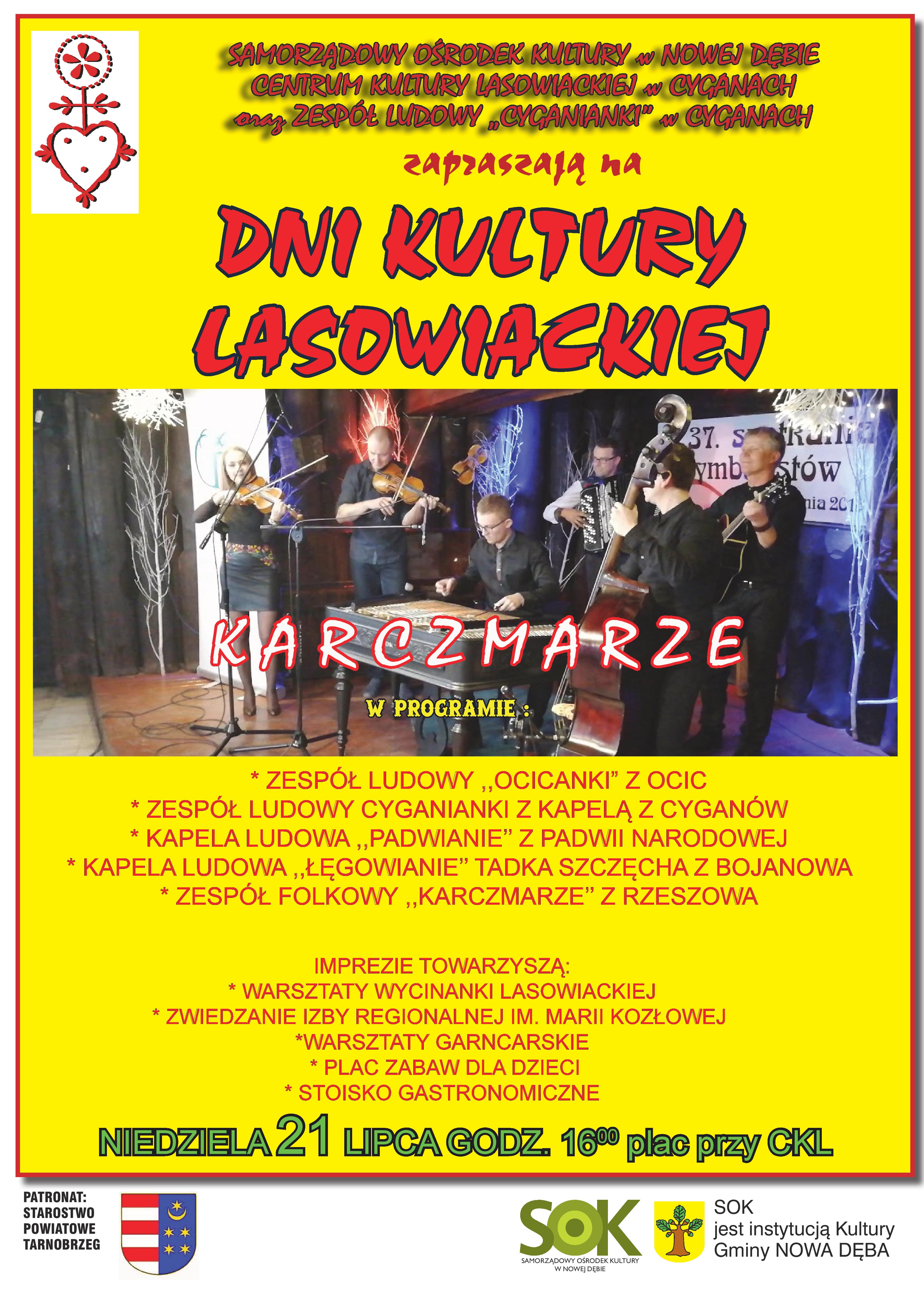 Już w najbliższą niedzielę zapraszamy na dwunastą edycję Dnia Kultury Lasowiackiej w Cyganach. Podczas imprezy zaprezentują się kapele i zespoły ludowe. Wystąpi również zespół folkowy Karczmarze....