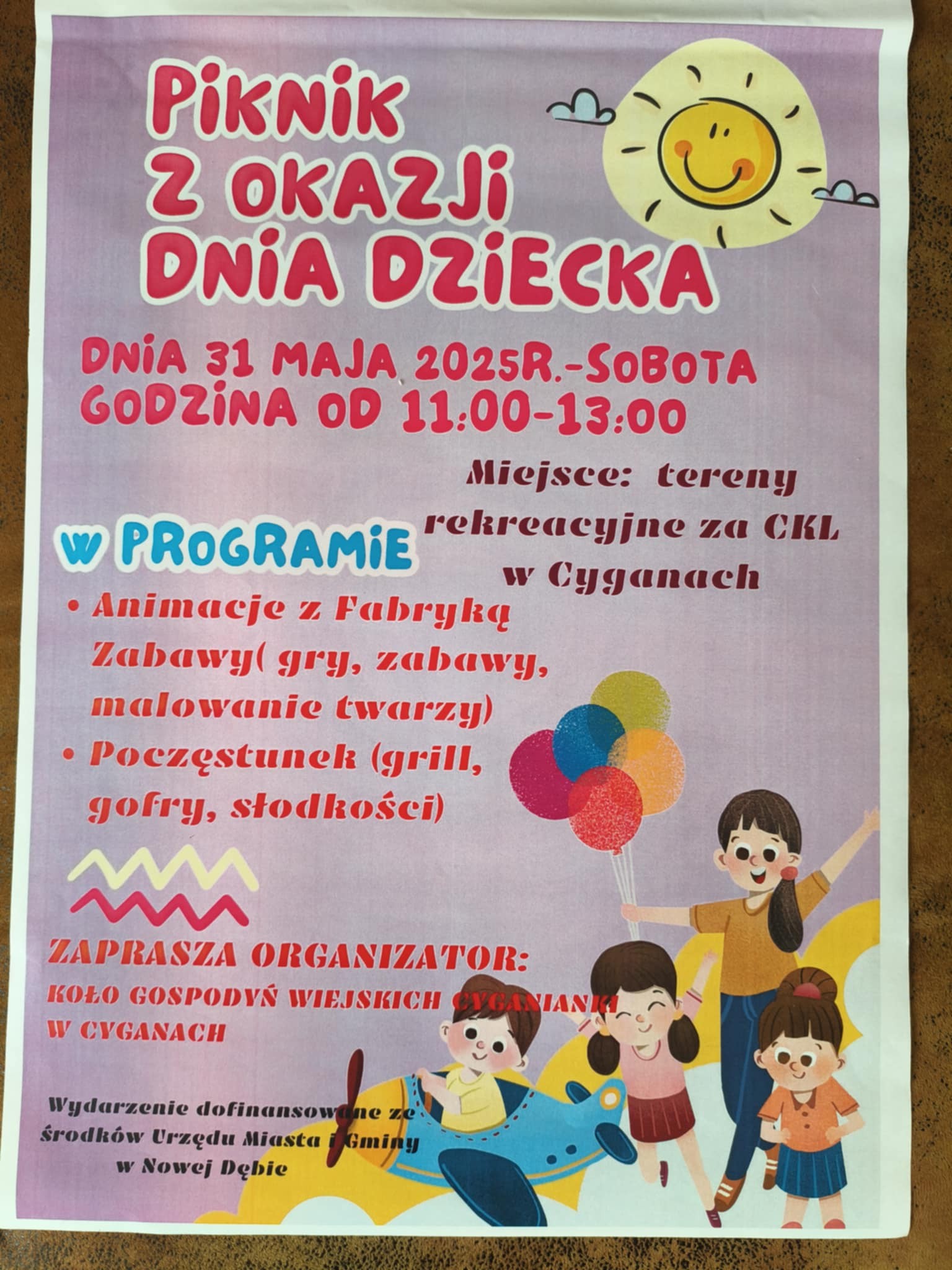 Koło Gospodyń Wiejskich w Cyganach zaprasza na piknik z okazji Dnia Dziecka....