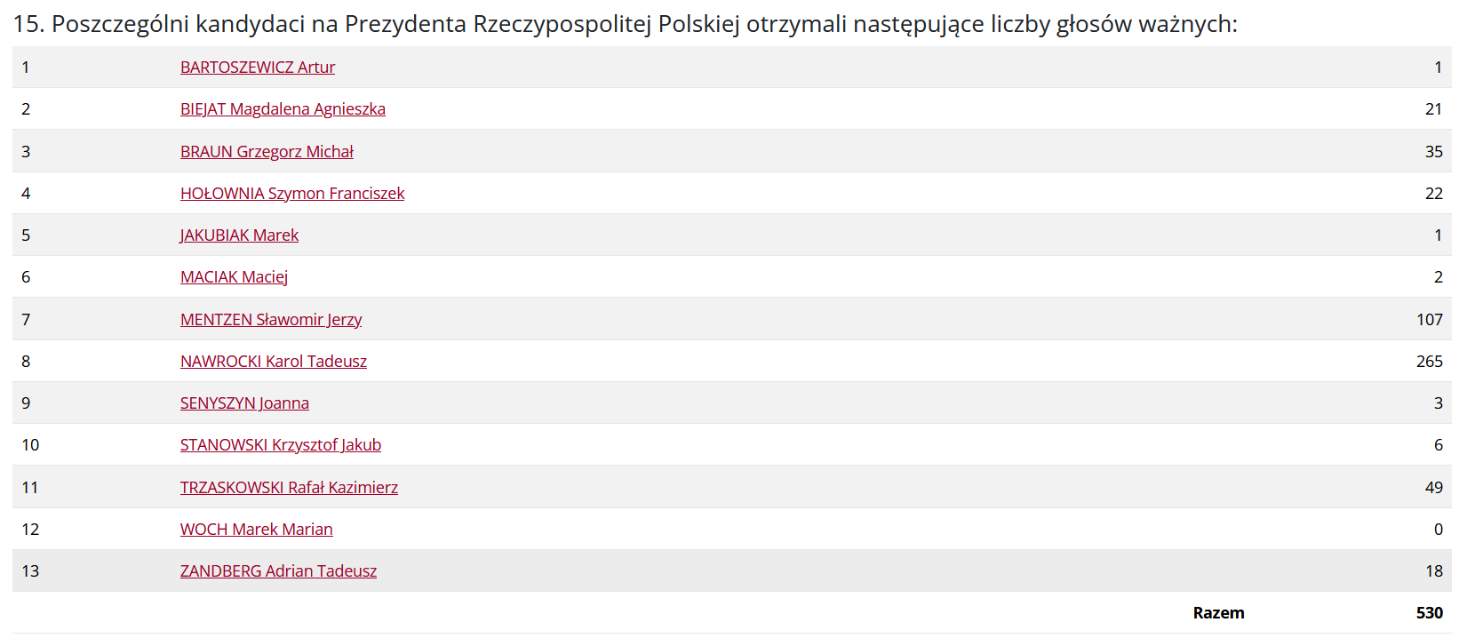 Przedstawiamy wyniki głosowania w wyborach na Prezydenta Rzeczypospolitej Polskiej...