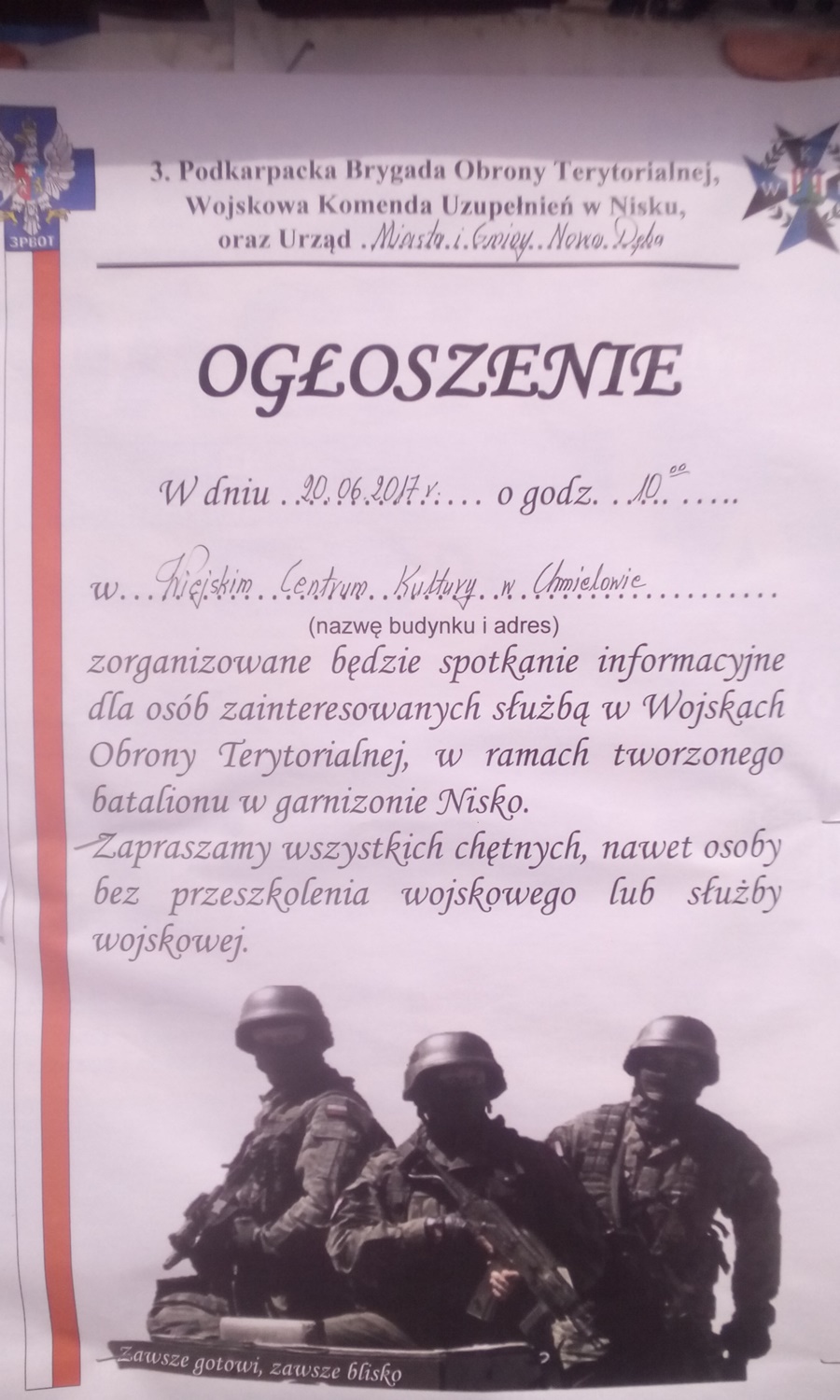Spotkanie informacyjne dla zainteresowanych służbą w Wojskach Obrony Terytorialnej ...