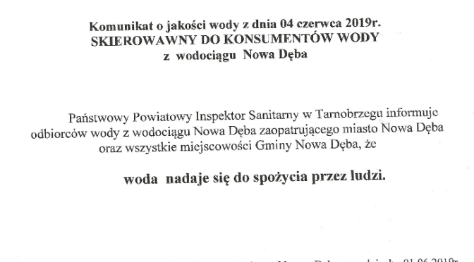 Jak poinformował Państwowy Powiatowy Inspektor Sanitarny w Tarnobrzegu po ostatnich badaniach nie stwierdzono zawartości bakterii z grupy coli w wodzie, tym samym nadaje się ona do spożycia.